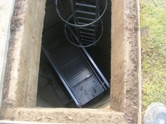Le magasin L’Echelle Européenne situé à Angers (49) a réalisé un accès à un puits: la passerelle est posée au fond du puits (rejet des eaux pluviales de l’usine à l’extérieur du site), et l’accès à cette passerelle se fait grâce à l’échelle à crinoline. La trappe de la passerelle permet de descendre pour faire la maintenance de la grosse vanne, elle se ferme en cas de risque de rejet toxique.