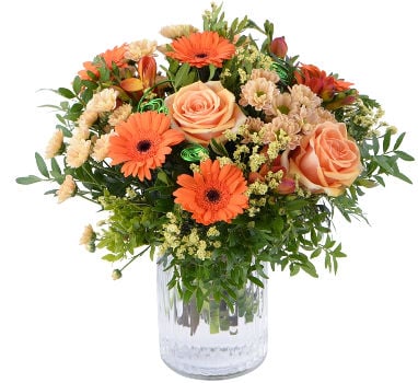 - Fauve : une composition de roses aux teintes fauves éclatantes, enveloppant une orchidée vanda apporte chaleur et réconfort. Composée également d’œillets et de santinis, la composition fait référence aux belles journées ensoleillées et douces que l’on retrouve notamment en début de cette saison.