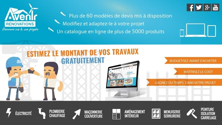 Des devis en ligne : Avenir Rénovations propose sur son site des devis de travaux permettant aux particuliers et aux agents immobilier de disposer d’une estimation du montant de leur projet. Il faut d’abord choisir un modèle et de l’ajuster, par la suite, à ses besoins. Il est aussi possible d’ajouter des articles parmi le catalogue disponible en ligne recueillant plus de 5 000 articles. Cette estimation en ligne permet au particulier d’estimer le montant de ses travaux et de se projeter à court ou moyen terme. D’autre part, elle permet à l’agence immobilière ayant des biens à vendre avec des travaux, de proposer un bien à la vente avec l’estimation des travaux à prévoir. Une qualification du lead pour les licenciés : Le particulier peut, s’il le veut, envoyer sa demande à l’un des licenciés du réseau Avenir Rénovations ? Ce dernier reçoit le détail du devis directement dans le logiciel qui lui permettra d‘établir un devis précis suite à la visite technique. Cette démarche permet de donner des réponses claires et rapides au client. Une interface client pour accéder à toutes les infos relatives à ses projets : En s’inscrivant sur le site de l’enseigne Avenir Rénovations, le client dispose d’une interface lui permettant de suivre ses demandes de rendez-vous et ses demandes de devis en linge. Il a aussi accès à ses factures, paiements, avoir et SAV. L’interface rassemble toutes les informations nécessaires au client, peu importe le licencié avec lequel il travaille et sa région. Il pourra donc accéder à ses informations avec le licencié qui a fait des travaux pour sa résidence principale et celui ayant réalisé des travaux pour sa résidence secondaire. Plus de 5 000 références en ligne : Grâce à ses nombreux partenariats noués avec les industriels et les fournisseurs, Avenir Rénovations a référencé, sur son site, un total de 5 000 produits. Le client peut acheter des produits pour ses projets de rénovation parmi la sélection disponible. Il peut faire une demande de devis en ligne pour la fourniture et la pose du produit ou tout simplement acheter le produit seul.