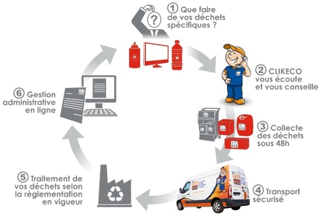 Clikeco mise sur son réseau d’agences afin de proposer une démarche de proximité, de tri et de gestion globale des déchets spécifiques et dangereux, simple, économique et sans engagement 100% TRI 2.0.