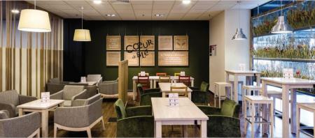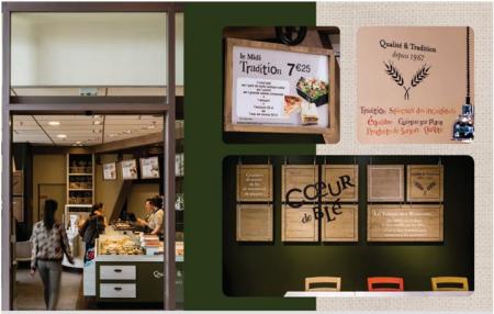 Une offre de produits axée sur la tradition et des espaces cosy dégageant une ambiance apaisante et sereine, c’est ce qui caractérise la franchise Cœur de Blé. Cette enseigne du groupe Casino, décline des espaces différents les uns des autres avec des mobiliers dont couleurs et design s’adaptent à chaque espace. Le consommateur s’y trouvera à son aise, détendu tout en prenant un plaisir gourmand.