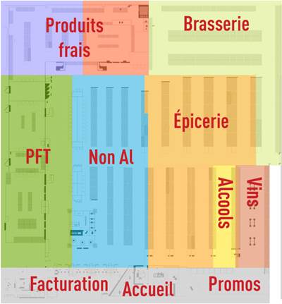 - 8 rayons de produits