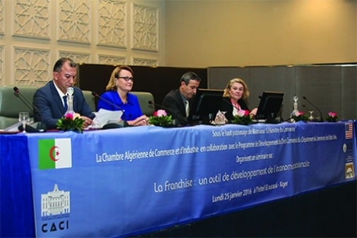 Ce séminaire sur la franchise en Algérie était organisé par la Chambre algérienne de Commerce et d’Industrie (CACI) en collaboration avec le CLDP (Programme du développement du droit commercial du ministère du commerce américain) et l’ambassade des États-Unis. Les organisateurs avaient invité des experts américains français et algériens.
