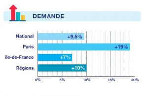 La demande enregistre de fortes progressions : Comme d’habitude, la demande au 1er semestre de l’année est plus importante qu’au 2nd par effet de saisonnalité. Les acquéreurs cherchent ainsi à réaliser leur projet immobilier avant septembre (changement de travail, scolarité…). Cette demande est stimulée par les taux d’intérêt toujours plus bas.
