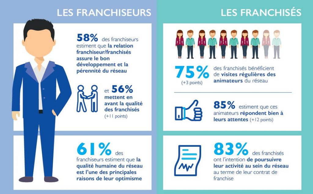 L’étude a révélé que les échanges d’informations et d’expériences entre franchiseurs et franchisés sont importants et bénéfiques autant pour le franchiseur que ses franchisés. D’ailleurs 87 % des franchiseurs organisent des sessions de réflexion avec leurs franchisés. Dans ce contexte, la qualité humaine du réseau est primordiale et 61 % des franchiseurs estiment même qu’elle est l’une des principales raisons de leur optimisme.