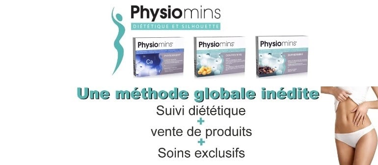 L’enseigne Physiomins a pour vocation d’aider ses clients à retrouver poids et silhouette. Sa méthode repose sur un accompagnement personnalisé alliant soins corporels, conseils d’hygiène alimentaire avec une ligne de produits diététiques sous le contrôle d’un médecin  nutritionniste, mais aussi produits minceur et anti-âge.