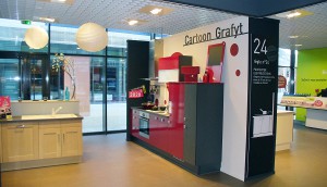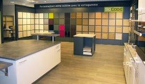 – l’espace choix, où sont exposés toutes les façades, poignées et plans de travail disponibles,