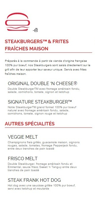 Steak ’n Shake a pour principe d’offrir à sa clientèle une qualité supérieure en termes de produits et de service, et cela au meilleur prix. Le réseau a su conserver son savoir-faire traditionnel pour toujours proposer des produits de haute qualité française et européenne et tout en gardant des prix extrêmement concurrentiels.
