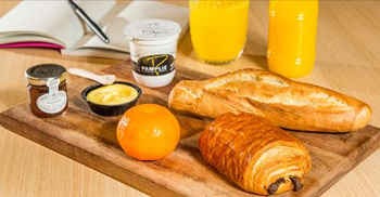 Les clients ont le choix entre trois formules dont les mets sont préparés le matin même dans les laboratoires parisiens de Franprix. Tel est le cas de l’ « Essentiel », une formule comportant un croissant ou pain au chocolat de 80 gr, un jus d’orange bio fraichement pressé 33 cl, un fruit frais brut de saison (au choix : pomme, banane, kiwi, clémentine) et un yaourt de la laiterie de Pamplie 125 gr (au choix : vanille, nature) pour seulement 5,99 €.
