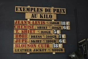 « Choisissez, pesez, emportez. » … L’enseigne veut proposer un concept qui rompt avec les codes traditionnels de la mode. L’achat au kilo de pièces uniques vintage vendues à petits prix est un mode de consommation ludique qui attire tous les types de clientèle, affirme Kilo Shop.