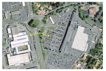 Il s’agit ici classiquement d’une voirie commune ou de parkings communs. La voirie commune doit avoir été conçue dans le cadre d’une même opération et à destination de la zone. La réalisation successive de bâtiments commerciaux le long d’une rue ou d’une route préexistante ne caractérise pas l’ensemble commercial.