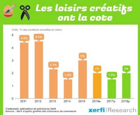 Jouet, décor, couture… les loisirs créatifs englobent divers secteurs. Secteurs qui ont enregistré une hausse de 2% de leur chiffre d’affaires pour s’établir à près d’un milliard d’euros en 2016. Les experts de Xerfi estiment que cette tendance s’installera dans le temps avec une hausse de 1,5% en 2017 et de 2% en 2018.