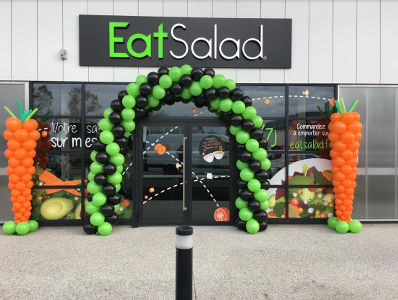 Lancée en 2013 par Antoine et Joseph Barat, et développée en réseau depuis 2015, la franchise Eat Salad® compte 20 restaurants franchisés en France, emplacements N°1, ouverts 7/7 j midi et soir, et prévoit l’ouverture prochaine d’une quinzaine de nouveaux restaurants. Son concept innovant, sans cuisson ni extraction, qui s’inscrit dans la nouvelle tendance du « healthy food», offre à ses clients la possibilité de composer un nombre infini de salades à partir de 9 bases, plus de 40 ingrédients et 8 sauces (faites maison). Eat Salad® continue son développement en franchise et inaugure deux nouveaux restaurants à Sainte-Eulalie et à Bordeaux.