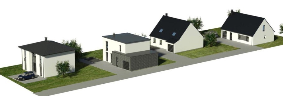 La 1ère maison, labellisée E3C1, est équipée d’une pompe à chaleur assurant simultanément chauffage et eau chaude sanitaire, d’une VMC double flux et d’un brise soleil assurant la production d’énergie photovoltaïque en autoconsommation.