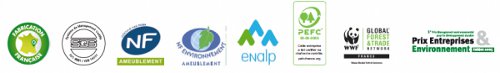 · en 2012, l’obtention de l’écolabel PEFC, pour l’approvisionnement en bois issus de forêts durablement gérées, et tout récemment, l’obtention de l’écolabel NF Environnement Ameublement, pour ses modèles bois Magellan et Delia, après l’avoir obtenu pour ses modèles en mélaminé, stratifié, laqué, il y a un an.