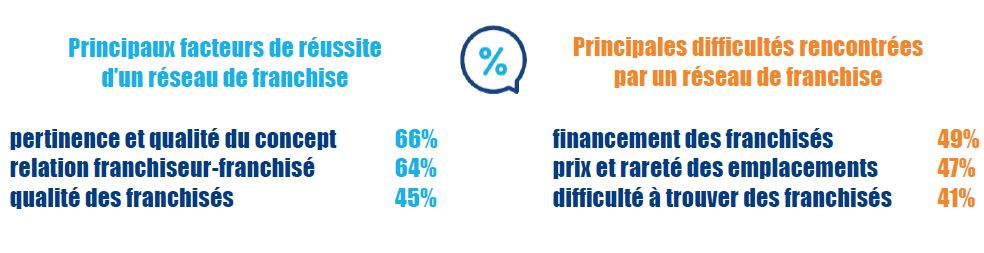 Au sujet des facteurs essentiels qui contribuent au bon développement d’un réseau, « la relation entre franchiseurs et franchisés » est citée par 64 % des franchiseurs (+ 9 points vs 2016) et « la qualité des franchisés », par 45 % d’entre eux.