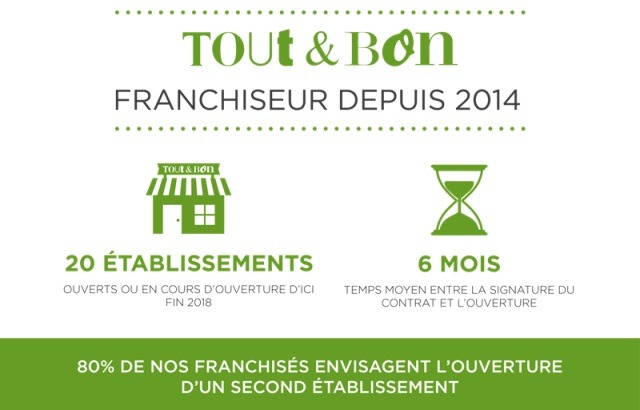 Le réseau Tout & Bon qui revendique un concept novateur évoluant sur un marché porteur, enregistrerait une croissance de 40 % par an depuis 5 an. Avec un objectif de 6 ouvertures en 2018, le réseau aurait atteint ses ambitions et pourrait bien les dépasser.