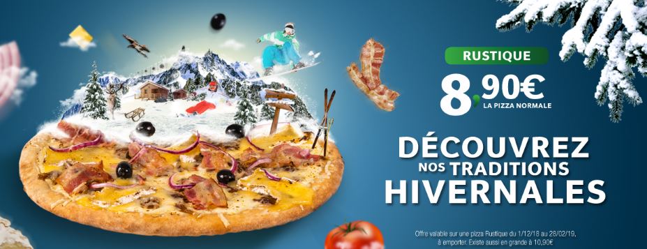 Cette offre est valable sur la pizza Rustique depuis le 1er décembre dernier et le restera jusqu’au 28 février 2019.