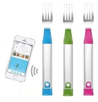 Cette fourchette avertit l’utilisateur quand il mange trop vite par de légères vibrations et des signaux lumineux.