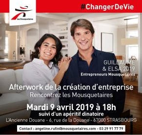 Les Mousquetaires, groupement réunissant 9 enseignes, organise son afterwork de la création d’entreprise, qui réunira dirigeants, chefs d’entreprises et futurs porteurs de projet. Cette rencontre se tiendra le 9 avril 2019 à Strasbourg.