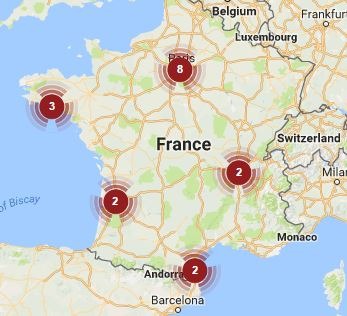 Les agences sont situées dans les villes suivants: Boulogne-Billancourt (92), Bordeaux (33), La Défense – Courbevoie (92), Lorient (56), Lyon (69), Montpellier (34), Nantes (44), Paris (75), Pau (64), Perpignan (66), Rennes (35), Saint-Mandé – Vincennes (94) et Saint-Maur-des-Fossés (94).