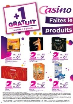 « Casino Mania » permet aux consommateurs de profiter d’une série de promotions concernant plus de 200 produits. Pour 1 produit acheté, les clients reçoivent un 2ème produit, et pour les détenteurs de la carte fidélité Casino, pour 2 produits achetés, 2 sont offerts (sur une sélection d’articles alimentaires).