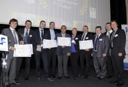 Les lauréats du réseau de cuisines équipées étaient encadrés par le directeur général et commercial de chaque enseigne non moins heureux d’accompagner leurs franchisés sur le podium, comme en témoigne la photo ci-contre (de gauche à droite : Patrick Vernhes, Thierry Tallet DG de Ixina France, Jérémy Fouray, Loïc Paitel DG de Cuisine Plus, Laurent Schietroma et son épouse, Michel Pioger DC de Cuisines Références, Michel Griffon DC de Ixina France, Franck Ecalard DC de Cuisine Plus et Didier Steinmyller DG de Cuisines Références).