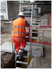 L’Echelle Européenne a conçu et développé, en partenariat avec un major du BTP, la 1ère plate-forme sécurisée du marché conçue pour accéder aux tranchées ou aux fouilles avec ou sans blindage en milieu urbain ou extérieur sur tous les chantiers d’assainissement ou d’enfouissement de réseau.