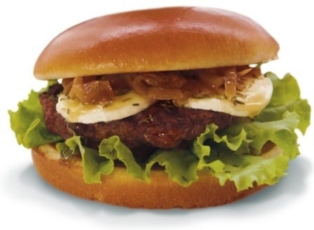 Le burger Mr. Seguin propose une recette onctueuse au goût de chèvre composée de 125 gr de viande de boeuf fraîche 100 % française façon bouchère, salade batavia, rondelles de chèvre Soignon, oignons grillés, miel, l’ensemble saupoudré de thym.