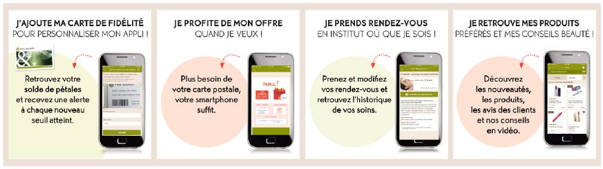 - Dématérialisation: les cartes postales envoyées par courrier aux membres Yves Rocher, se retrouvent sur l’application, permettant ainsi de profiter des offres partout et à tout moment