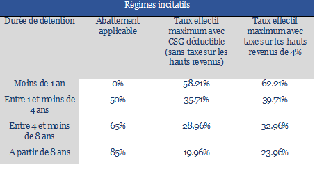 Le régime incitatif est applicable aux cessions réalisées dès le 1er Janvier 2013 (Loi de Finance 2014), sauf si ces cessions pouvaient bénéficier en 2013 d’un régime plus favorable :