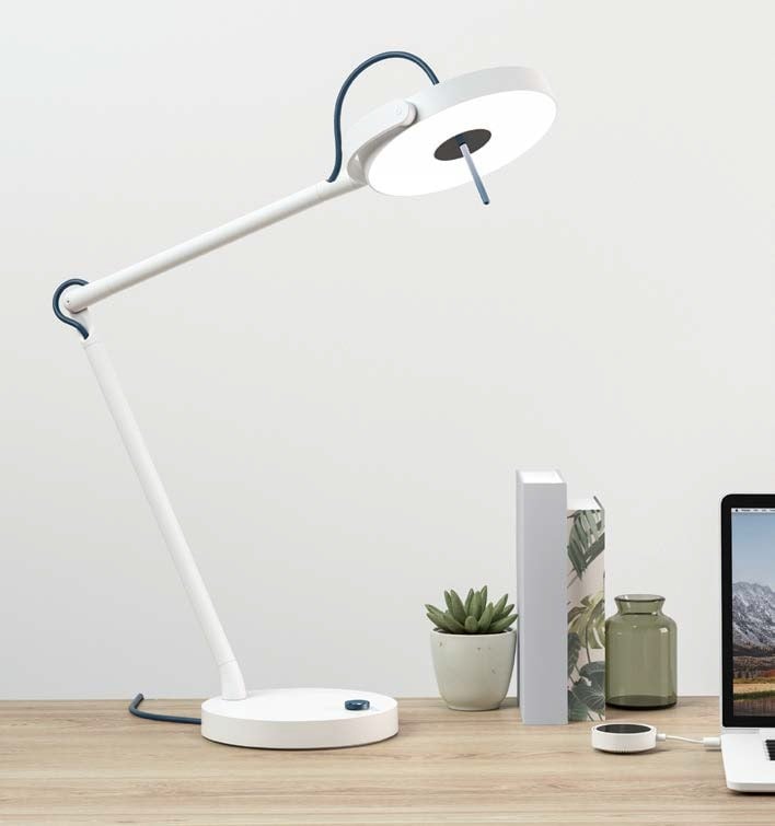 Plug and Play, connexion sans fil, digital détox, écoresponsable, luminothérapie, ambiance lumineuse personnalisée, commande par application web et smartphone… La nouvelle création a été pensée et conçue pour être flexible, avec un faisceau lumineux qui peut être orienté pour s’adapter aux besoins de l’utilisateur. La température de couleur (du blanc froid ou orange chaud) et l’intensité lumineuse de la lampe sont aussi contrôlables.