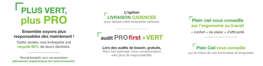 Plein Ciel suit une charte de développement durable qui se concrétise au travers des actions suivantes: