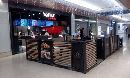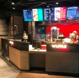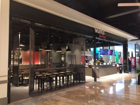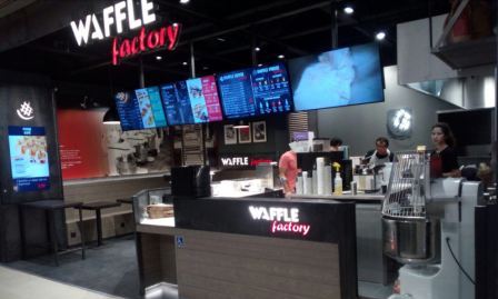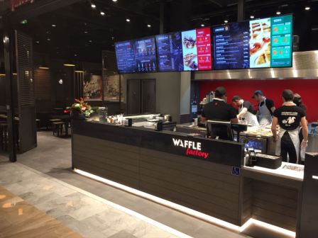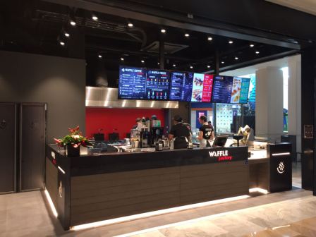 Le point de vente propose un espace de 77 m2 avec une terrasse de 20 places assises, où les clients peuvent déguster les produits de l’enseigne Waffle Factory sur place ou à emporter.