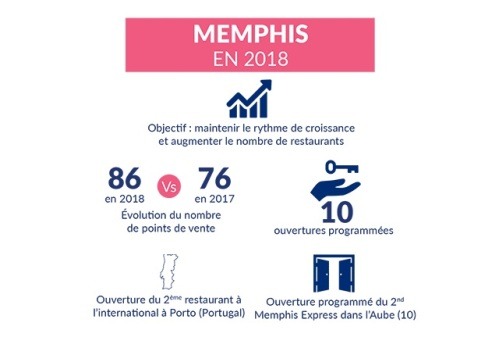 Pour ce qui est des objectifs du réseau en 2018, Memphis souhaiterait ouvrir 10 restaurants de plus pour atteindre un total de 86 points de vente. Suite à l’ouverture du 2ème restaurant à l’international à Porto, au Portugal, l’enseigne devrait s’attaquer à l’inauguration d’un second Memphis Express dans l’Aube (10).