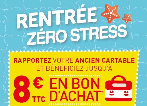 Pour profiter des bons d’achat, le client devait se rendre, du 26 juin au 14 juillet, dans un magasin Hyperburo pour ramener l’ancien cartable ou sac à dos en bon état. Il se voyait remettre un bon d’achat de 5 € ou 8 € (pour les porteurs de Carte de Fidélité), utilisable lors du passage en caisse, pour tout achat minimum de 50 € en magasin.