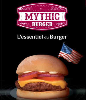 Outre ses fondamentaux, l’enseigne veille à varier les recettes pour le plus grand plaisir de ses clients. Du 2 mai au 3 juillet 2017, Mythic Burger met en avant sa création du moment : The American Cheesburger avec son pain rustique, viande de bœuf fraîche 100% française cuite à la flamme, cheddar, tomate fraîche, oignon rouge frais, ketchup et mayonnaise.