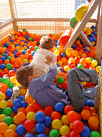 Dès l’entrée, les enfants sont accueillis par un ours géant qui fait des bulles et par un arbre à ballons.