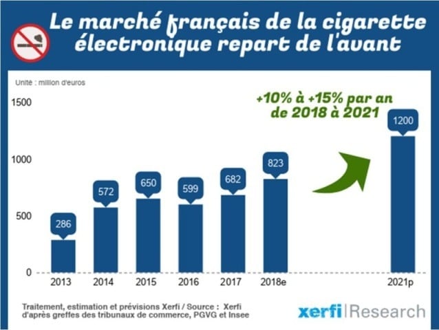 La France deviendra, de ce fait, 3ème marché mondial de la vape derrière les États-Unis et le Royaume-Uni, selon les prévisions de Xerfi.