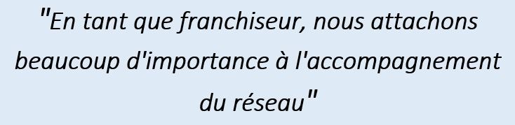 Après l’autre aspect c’est que nous, en tant que franchiseur, nous attachons beaucoup d’importance à l’accompagnement du réseau. Nos franchisés sont seuls et quelque part on se doit de les guider, de les accompagner, évidemment au démarrage mais aussi tout au long de leur parcours. Pour cette raison, nous disposons d’un centre de formation à Paris. Nous y formons nos nouveaux franchisés, mais nous allons aussi y accueillir des franchisés actuels pour de nouvelles formations. Toujours dans le but de soutenir notre réseau, nous allons renforcer nos effectifs en 2018, au niveau de la formation et de l’animation. Ces services bénéficieront respectivement d’1 et de 2 personnes supplémentaires, soit 2 et 8 personnes au total.«