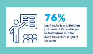 Selon l’enquête annuelle de la franchise Banque Populaire / FFF, 76 % des franchisés de moins de 5 ans ont affirmé que la formation initiale leur a permis d’être bien préparés à leur activité. De plus, 92 % des franchiseurs proposent aussi des formations pour le personnel des franchisés.