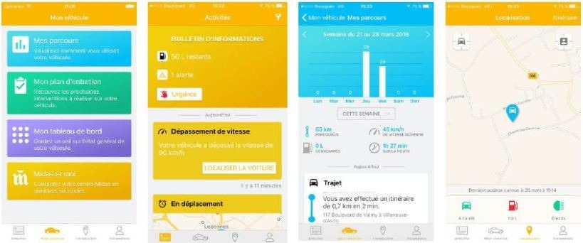 Grâce à l’application Midas Connect, le véhicule devient « intelligent » et l’entretien automobile est facilité (via des alertes en temps réel sur les prochaines interventions prévues dans le carnet d’entretien et sur les contrôles / diagnostics à réaliser).
