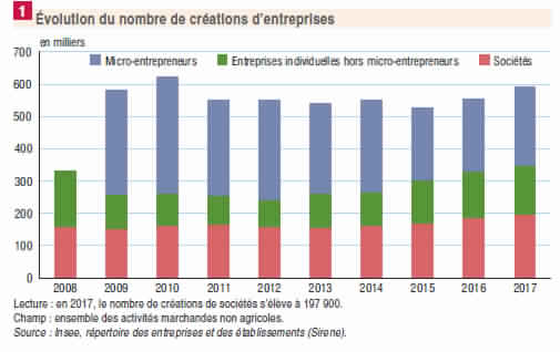 Avec 591 000 entreprises lancées en 2017 (+ 7 % vs 2016), les créations d’entreprises seraient à leur plus haut niveau depuis 2010. D’après les statistiques de l’INSEE, l’année 2017 a été marquée par: