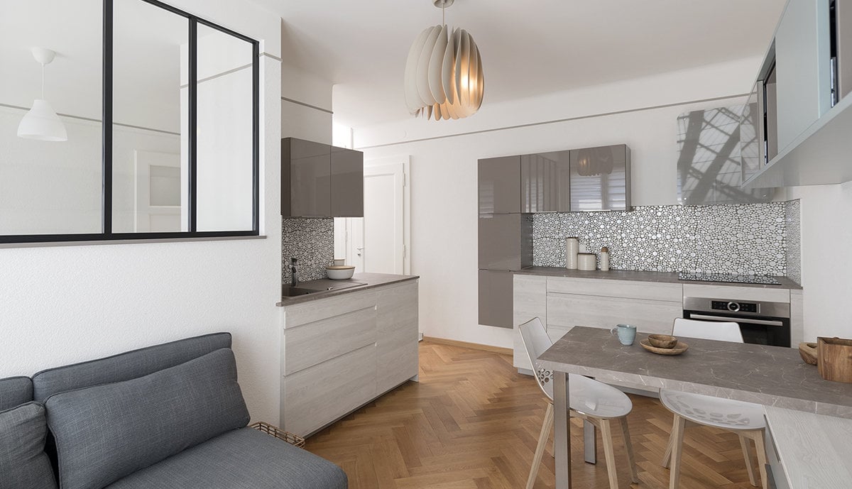 Le point de vente Mobalpa de Mâcon a pris en charge le projet de modernisation du studio de Marianne et Serge. Le couple voulait un concept où tout serait intégré, avec un design adapté et des matériaux de qualité et résistants. Ils souhaitent aussi un modèle contemporain, dans l’air du temps, idéal pour un appartement destiné à la location.