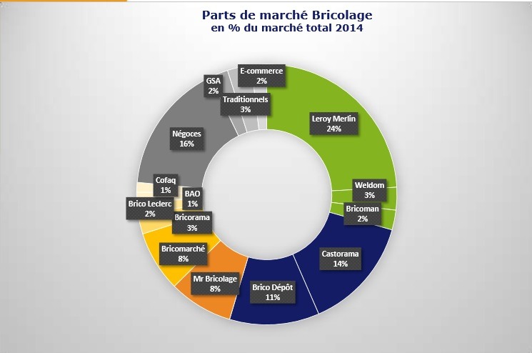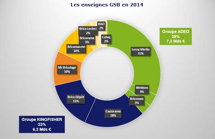 Dans un communiqué diffusé le 3 avril 2014, Unibal* revenait sur les chiffres du marché du bricolage pour 2014 et les tendances de 2015. Le contexte est marqué par des positions concurentielles fortes du circuit des grandes surfaces de bricolage (GSB) détenus par deux grands groupes : Adeo et Kingfisher, le marché gardant par ailleurs un potentiel de développement encore tout à fait intéressant.