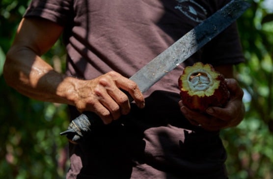 « L’entrée de la plantation fut forte en émotions car en ouvrant ma boutique je n’imaginais pas prendre dans mes mains des cabosses fraîchement cueillies. J’avais l’image du magasin qui venait se superposer à ces cacaotiers à perte de vue. Être Chocolatier Récoltant est une grandeur supplémentaire dans votre métier car il y a le savoir-faire en Équateur et le savoir-faire de nos chocolatiers à Marssac-sur-Tarn. »