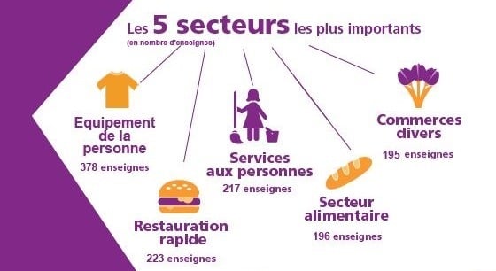 Top 5 des secteurs en nombre de points de vente franchisés: