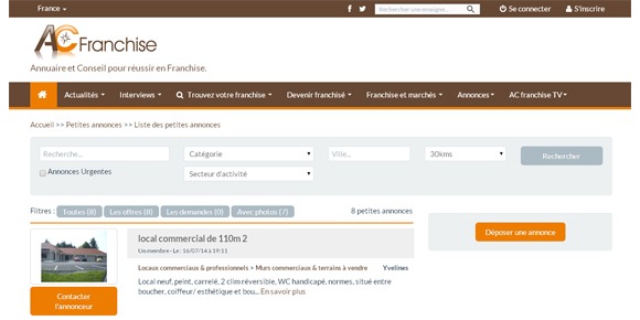 Vous avez une affaire à vendre ? Vous cherchez un local ? Vous cherchez un collaborateur pour développer votre réseau? Utilisez les petites annonces d’AC Franchise.