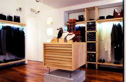 Vêtements et accessoires sont présentés avec du mobilier exclusif à l’enseigne. Qualité et esthétique permettent de mettre en valeur les créations de la marque.
