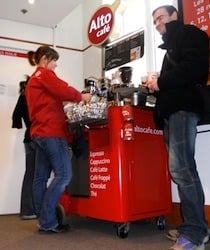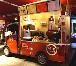 altomobile », un petit véhicule moteur aménagé en comptoirs café et boissons chaudes,
